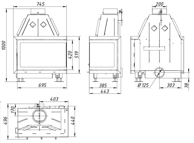 Каминная топка EcoKamin Альфа 700 R