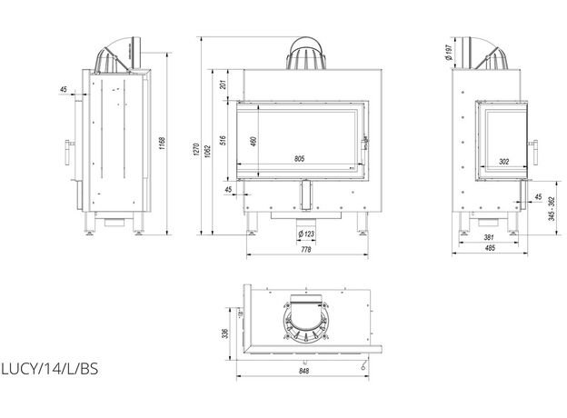 Каминная топка Kratki Lucy 14 L/BS