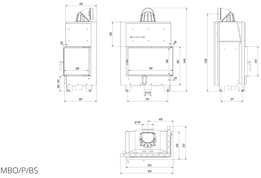 Каминная топка Kratki MBO 15 R/BS