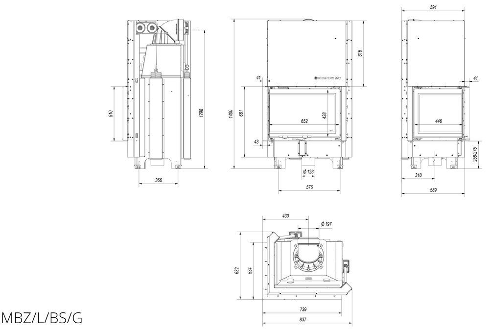 Каминная топка Kratki MBZ 13 L/BS/G