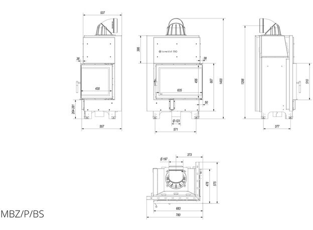 Каминная топка Kratki MBZ 13 R/BS