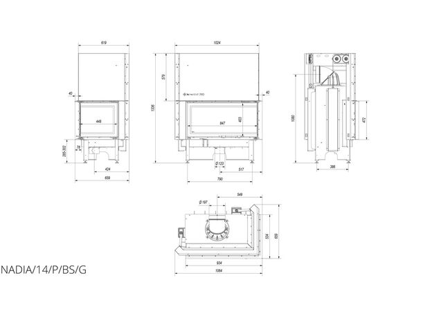 Каминная топка Kratki Nadia 14 R/BS/G