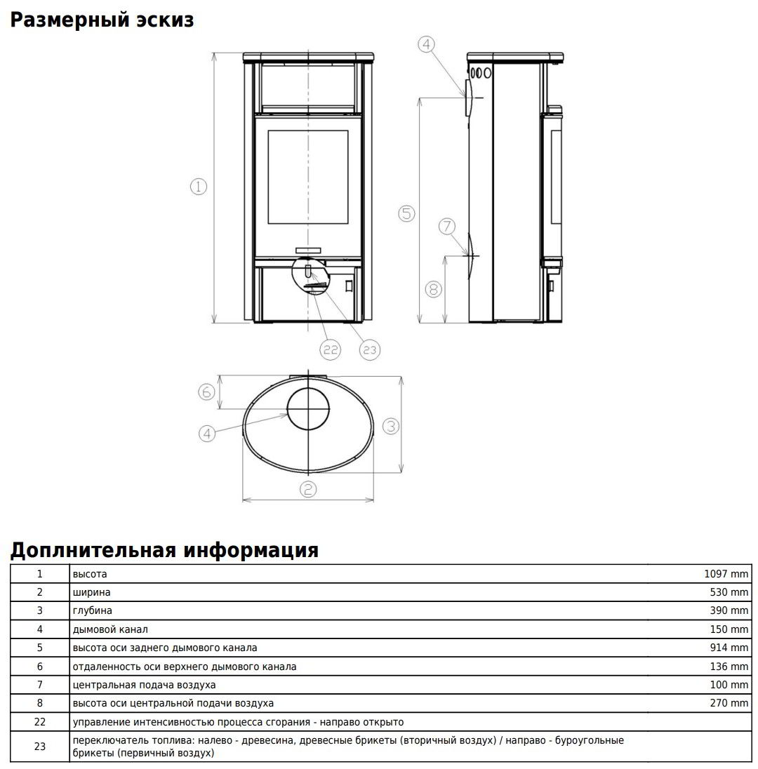 Диаметр дымохода: