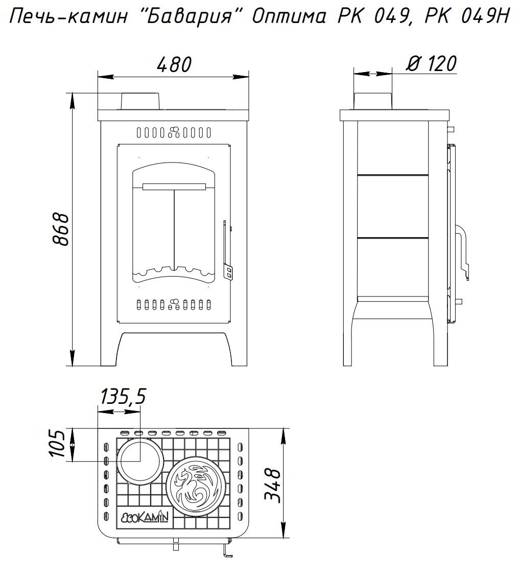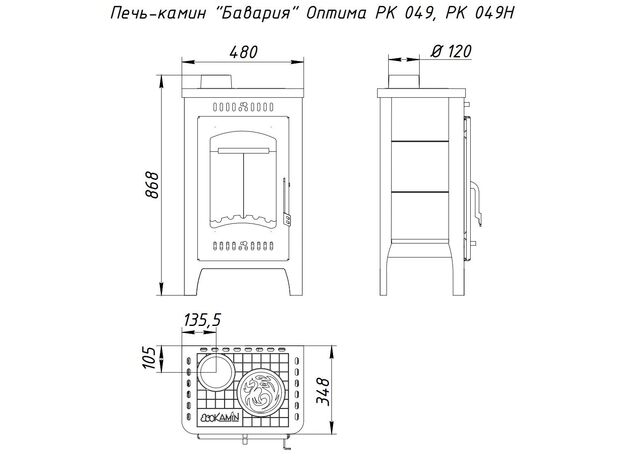 Печь-камин EcoKamin Бавария Оптима с плитой