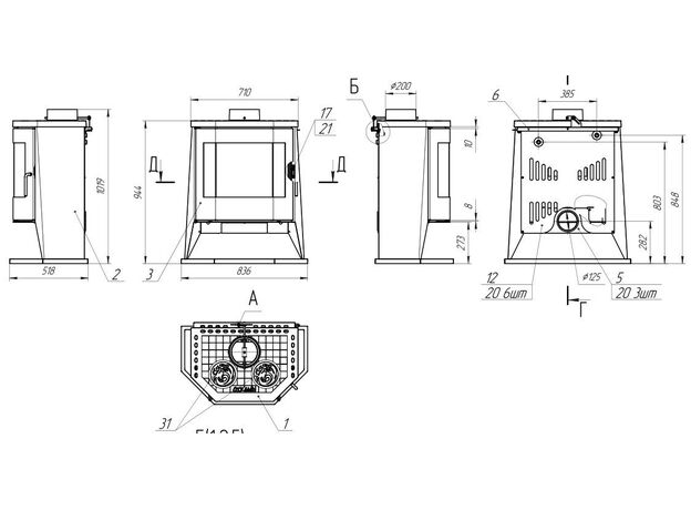 Диаметр дымохода: