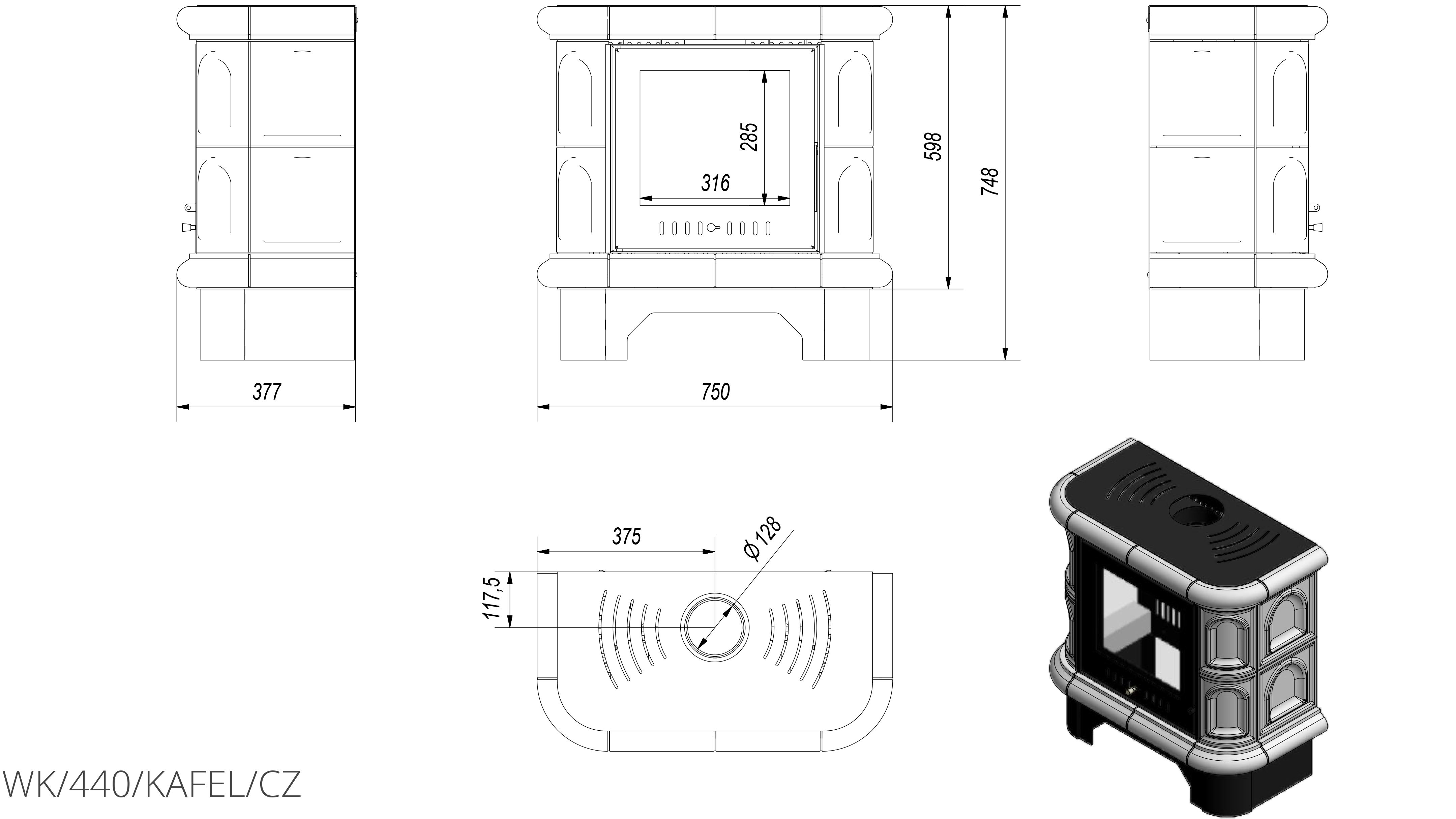 Печь-камин Kratki WK 440 kafel Black