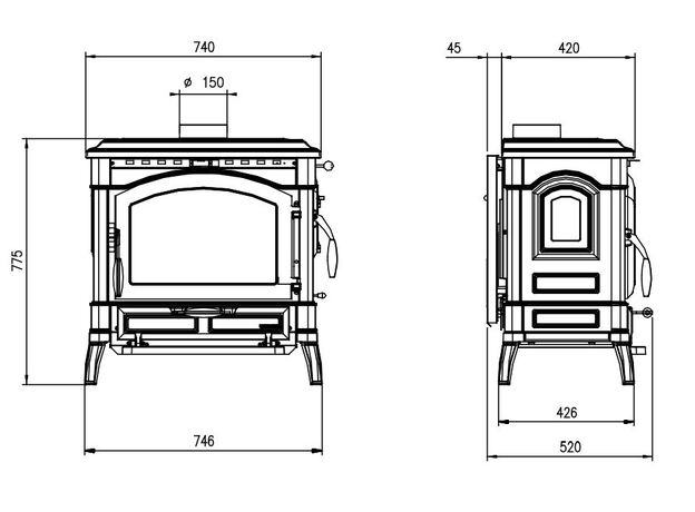 Диаметр дымохода: